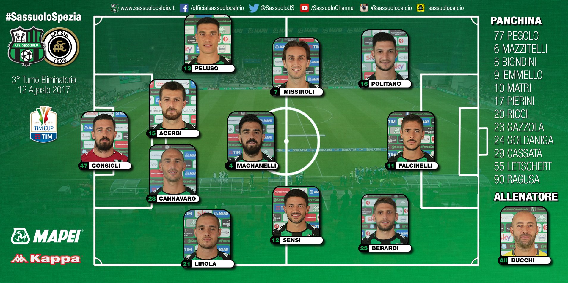 Skład w miarę najlepszy (bez dwóch strzelb w ataku), tylko jeden małolat wchodzi bez gry na pułapie ligowym, w tym może 2-3 którzy mają trochę gry ale nie są podstawowymi, tutaj takiej akcij jak z wczorajszym Carpi jednak nie mamy.